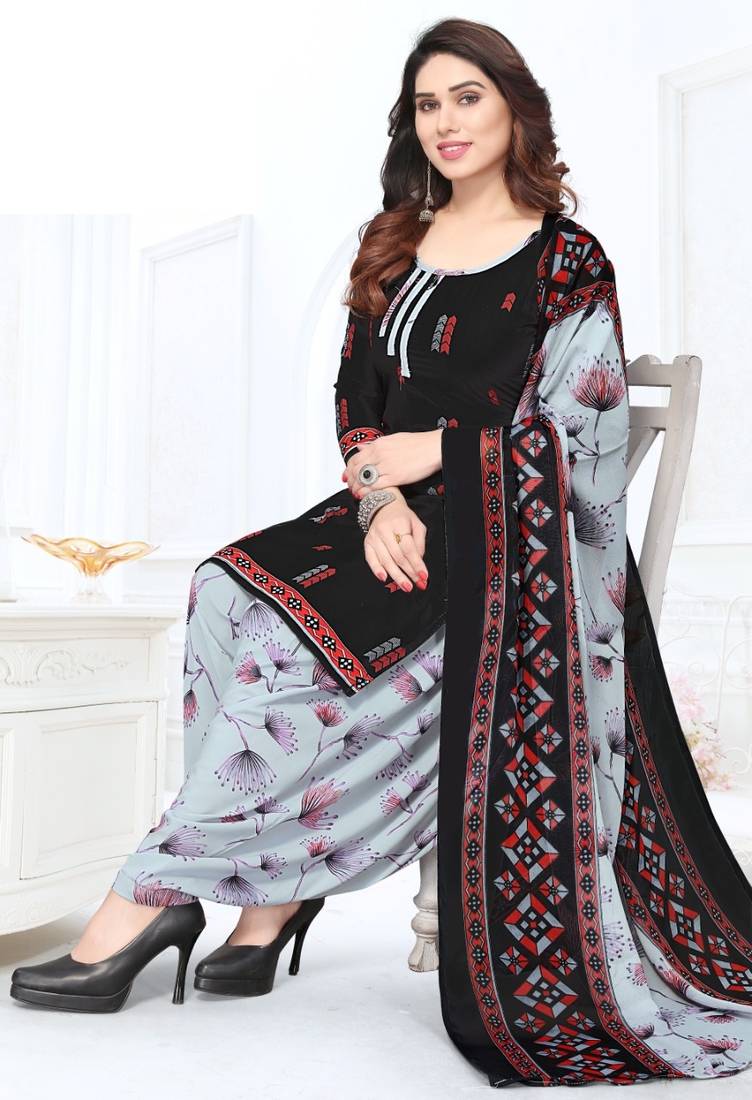 This Beautiful Unstitched Crepe Kurta & Patiyala Dress Material Which Comes From Brand : Threads A Product By Jai Bhawani Silk Mills. Featuring An Attractive Patterns & It Comes With A Wonderful Colour Combinations That Enhances Its Appeal. It Also Have Stylish Printed Dupatta With Kurta & Patiyala Untitched Dress Material.