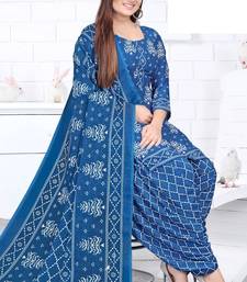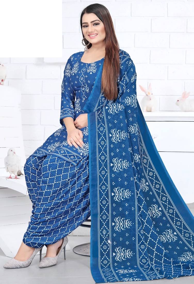 Blue printed crepe salwar unstitched