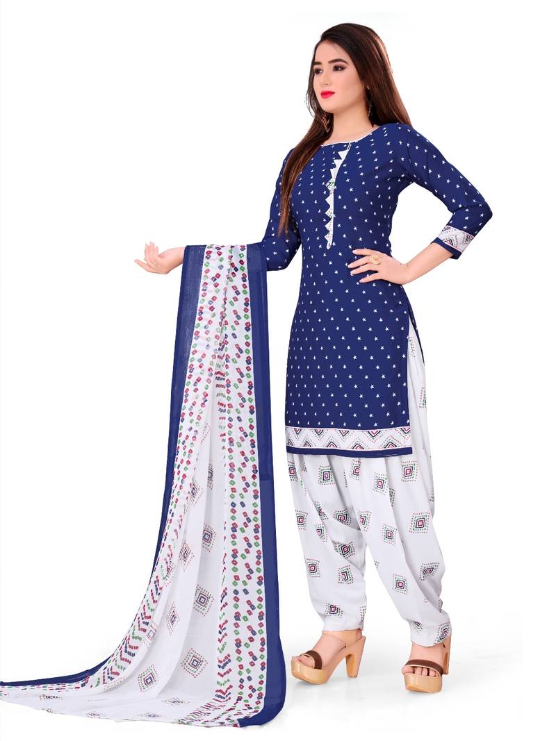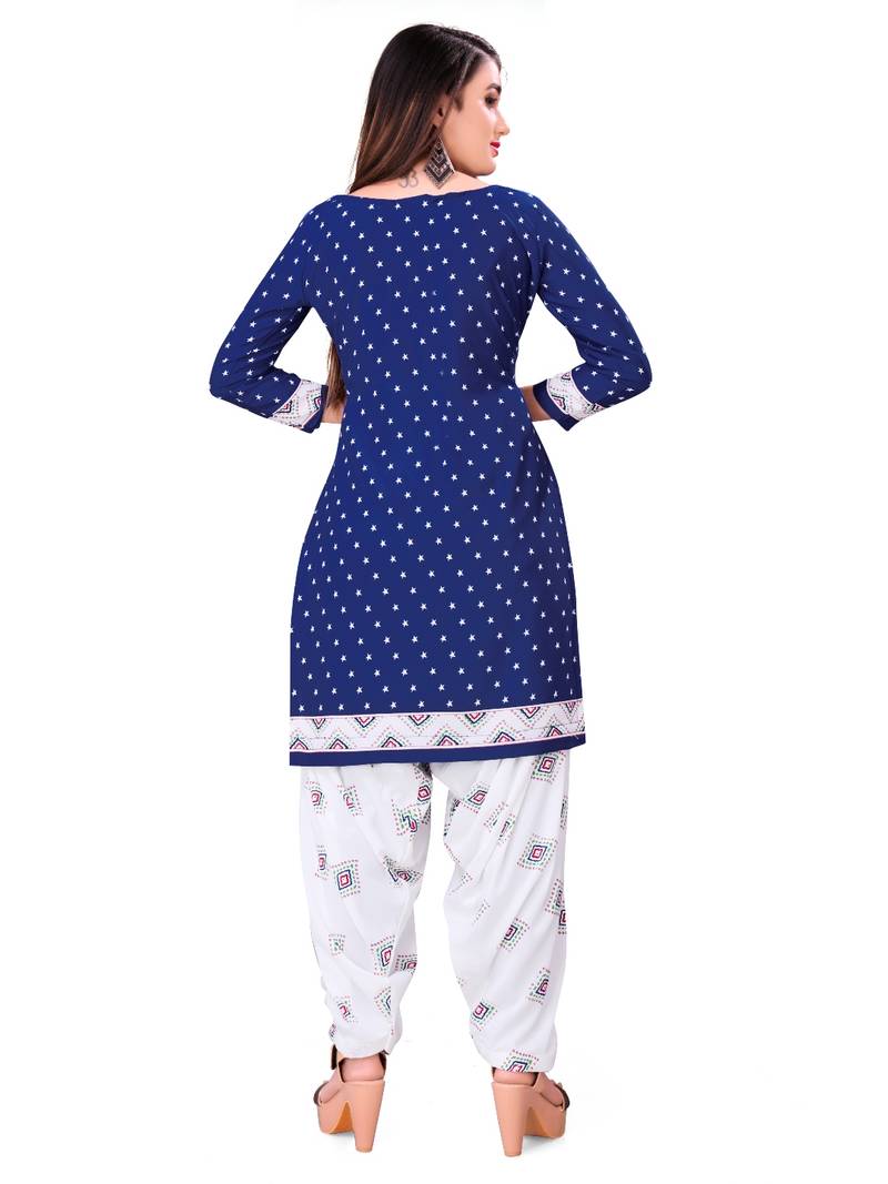 Navy-blue printed rayon salwar unstitched