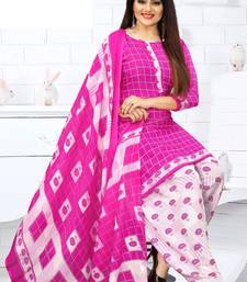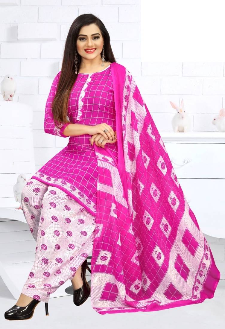Pink printed crepe salwar unstitched