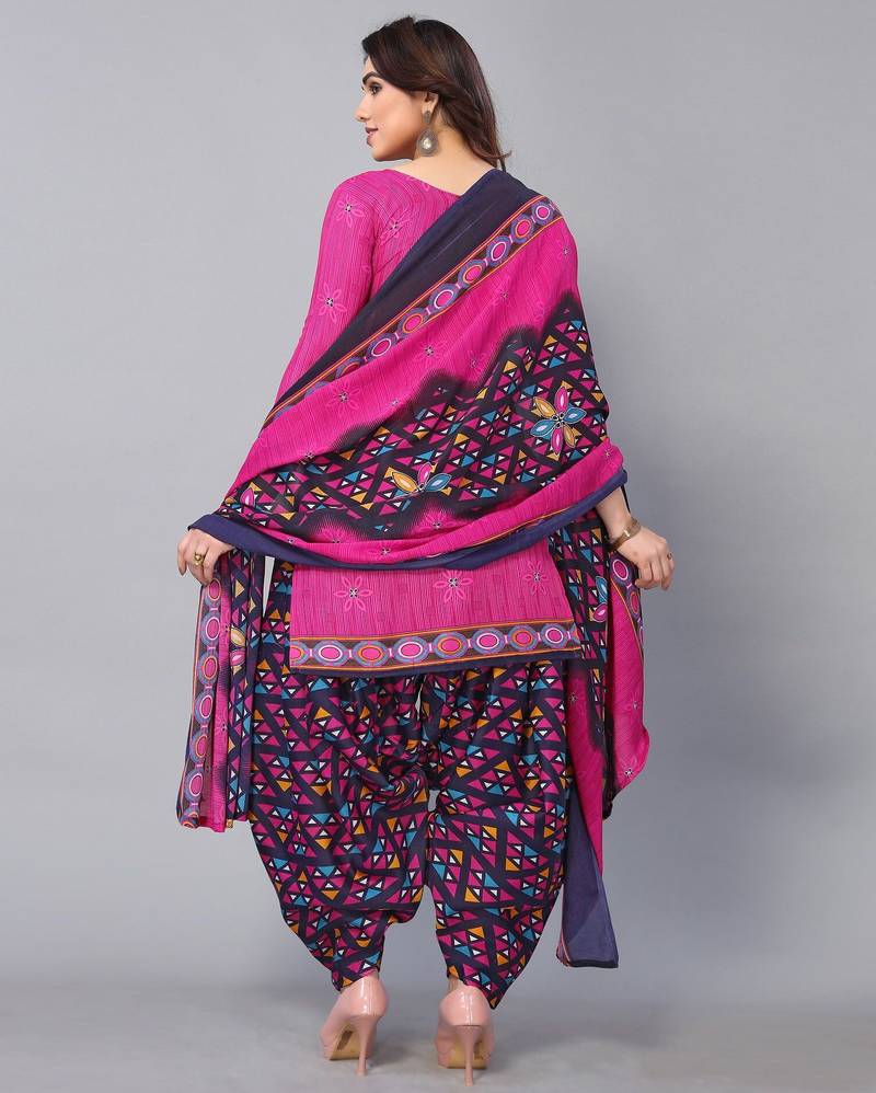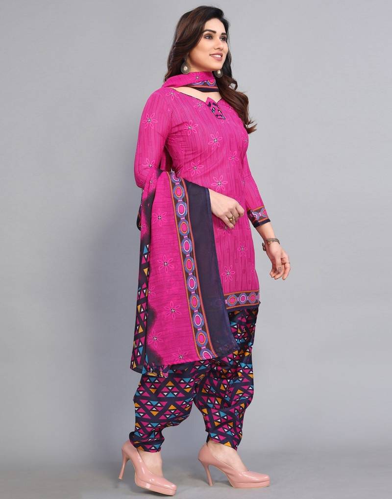 Unstitched printed cotton blend kurta & patiyala dress material with top, bottom & dupatta