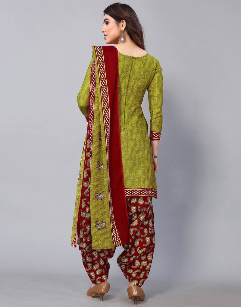 Unstitched printed cotton blend kurta & patiyala dress material with top, bottom & dupatta