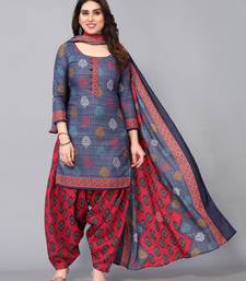 Unstitched printed cotton blend kurta & patiyala dress material with top, bottom & dupatta