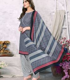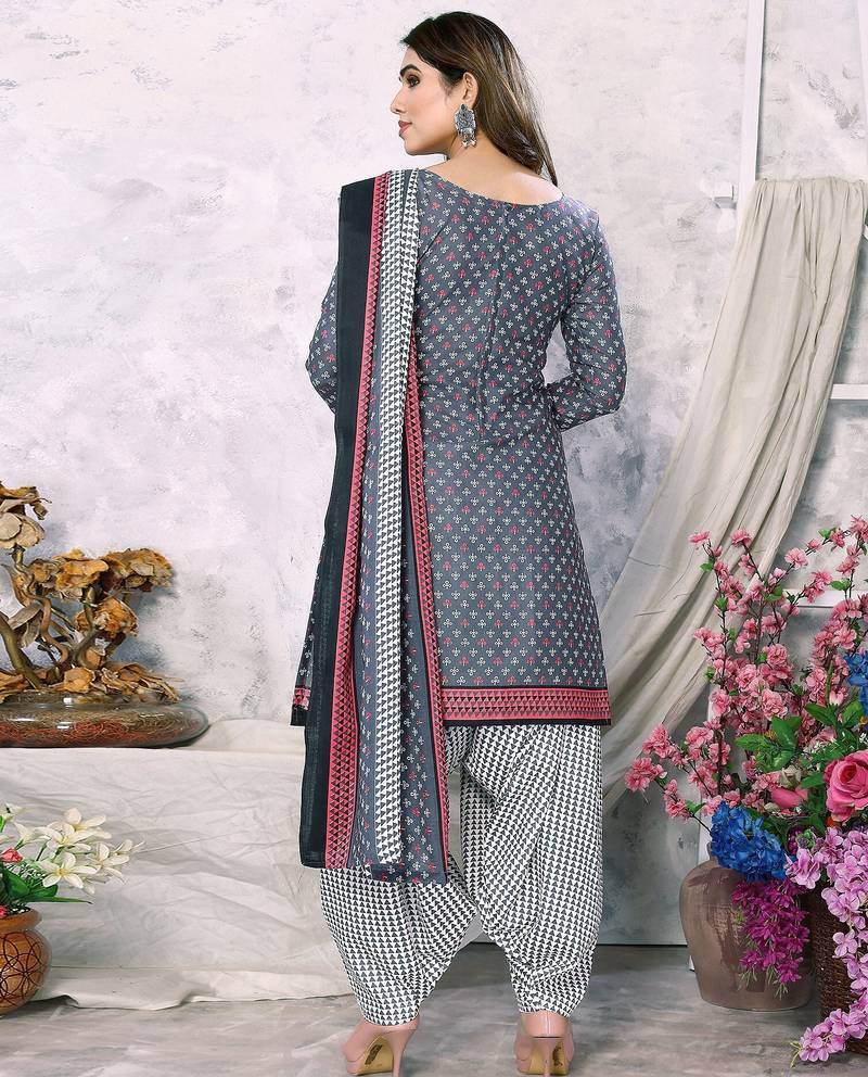 Unstitched printed cotton blend kurta & patiyala dress material with top, bottom & dupatta