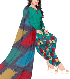 Unstitched printed crepe kurta & patiyala dress material with top, bottom & dupatta