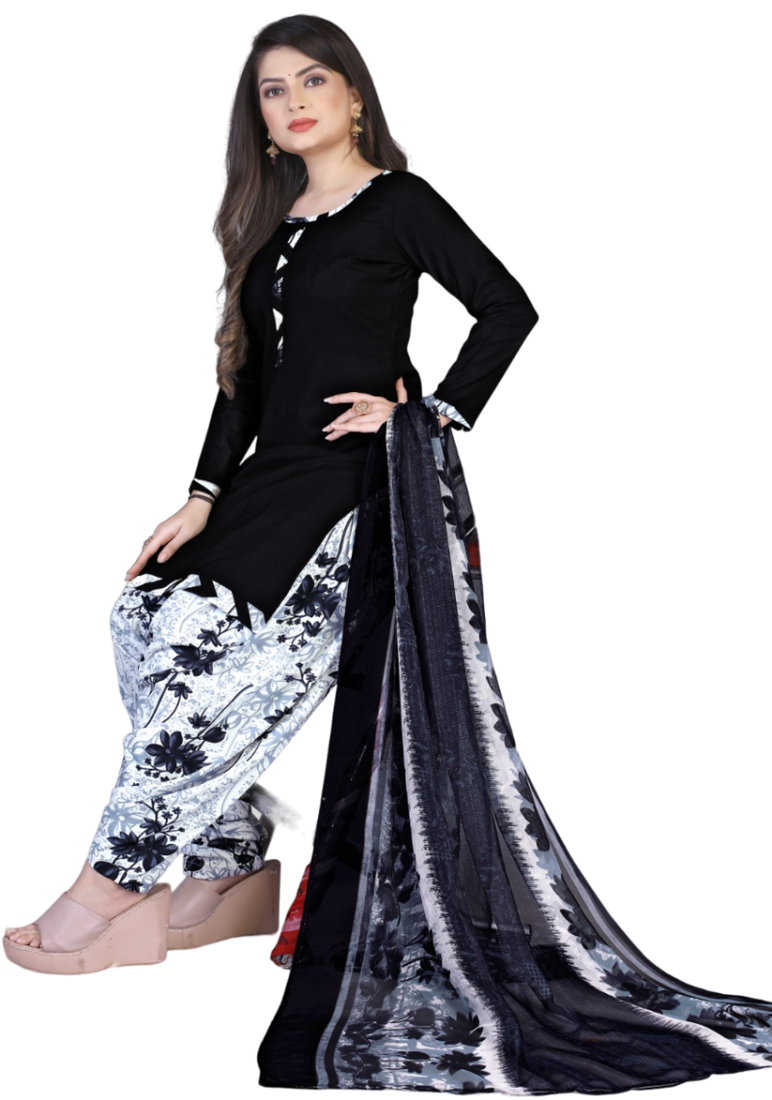 Product Name Unstitched Printed Crepe Kurta & Patiyala Dress Material With Top, Bottom & Dupatta