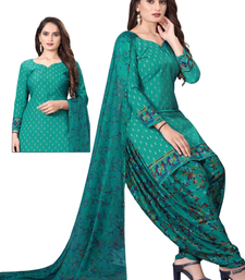 Unstitched printed crepe kurta & patiyala dress material with top, bottom & dupatta