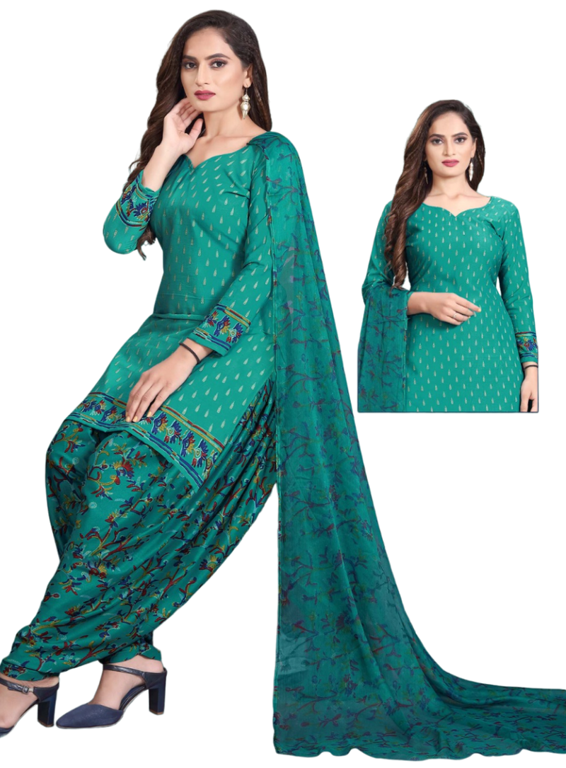 | Product Name | Unstitched Printed Crepe Kurta & Patiyala Dress Material With Top, Bottom & Dupatta | |