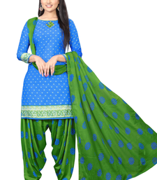 Unstitched printed crepe kurta & patiyala dress material with top, bottom & dupatta