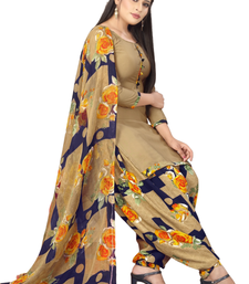 Unstitched printed crepe kurta & patiyala dress material with top, bottom & dupatta