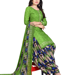 Unstitched printed crepe kurta & patiyala dress material with top, bottom & dupatta
