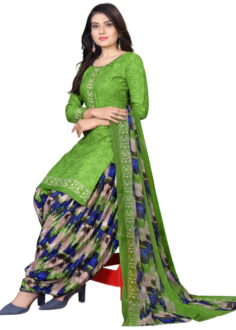 | Product Name | Unstitched Printed Crepe Kurta & Patiyala Dress Material With Top, Bottom & Dupatta | |