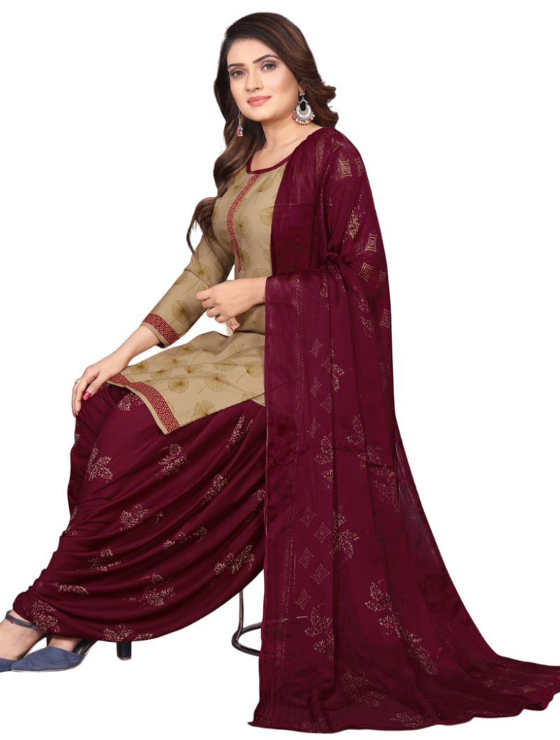 | Product Name | Unstitched Printed Crepe Kurta & Patiyala Dress Material With Top, Bottom & Dupatta | |