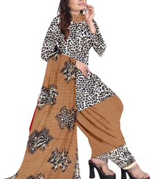 Unstitched printed crepe kurta & patiyala dress material with top, bottom & dupatta