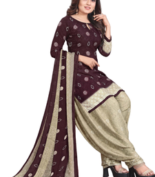 Unstitched printed crepe kurta & patiyala dress material with top, bottom & dupatta