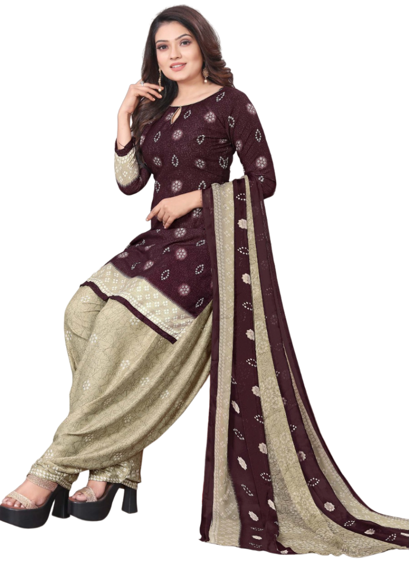 | Product Name | Unstitched Printed Crepe Kurta & Patiyala Dress Material With Top, Bottom & Dupatta | |