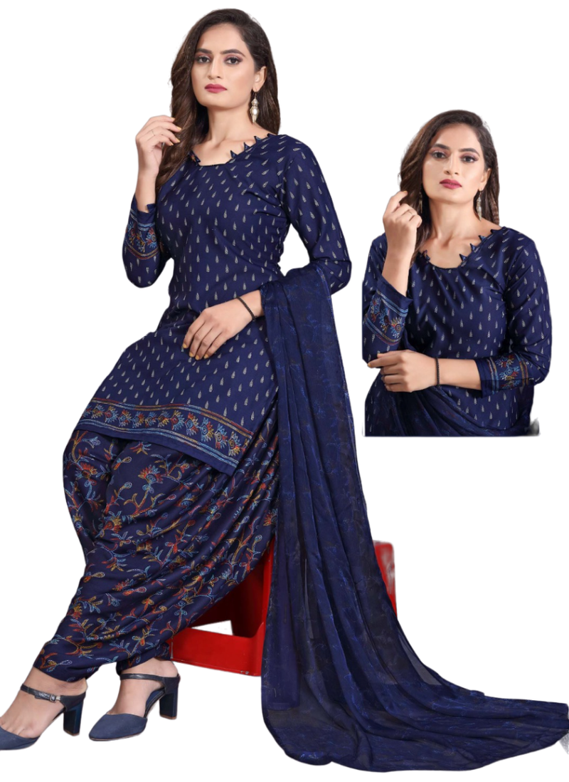 | Product Name | Unstitched Printed Crepe Kurta & Patiyala Dress Material With Top, Bottom & Dupatta | |