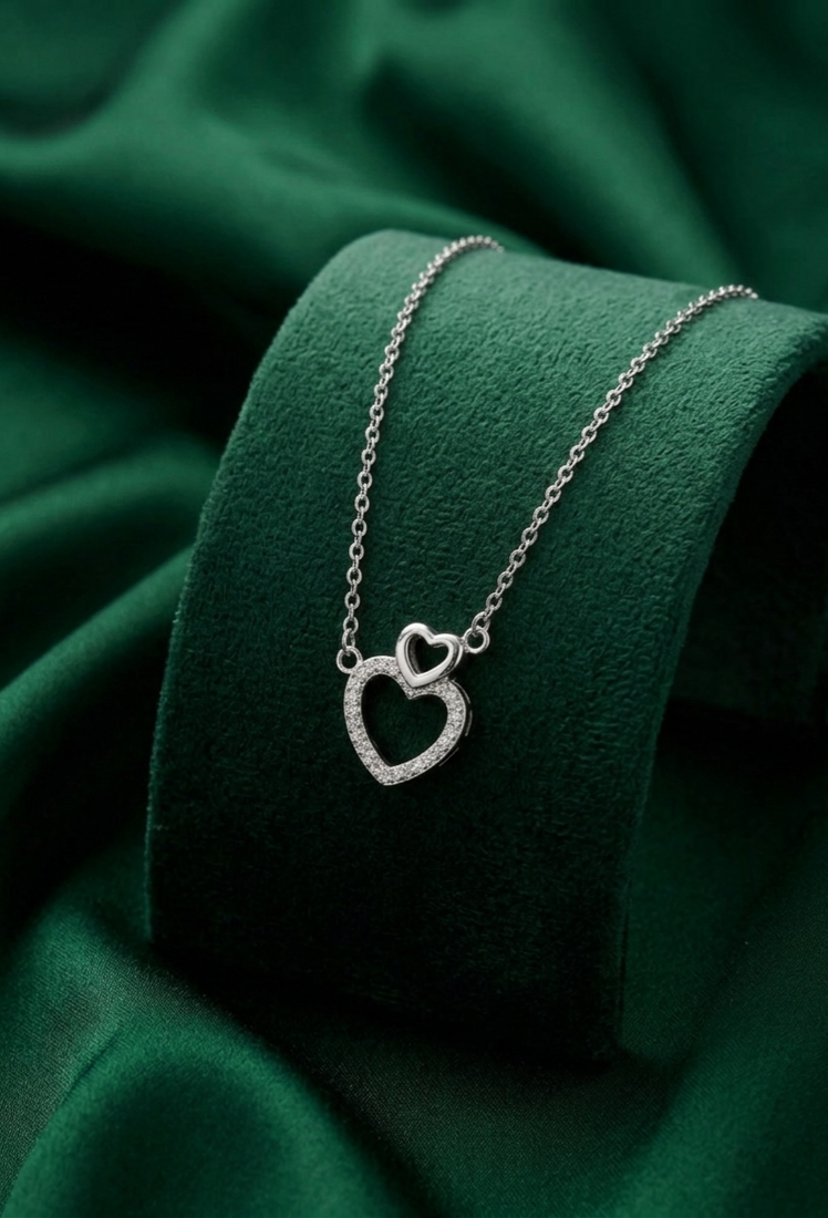 | Product Name | 925 Sterling Silver Double Heart Pendant Necklace For Women | |