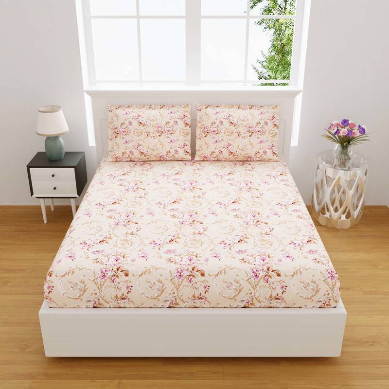 Jaipur Fabric Miniflora Flamingo King Size Bedsheet With 2 Pillow Covers
