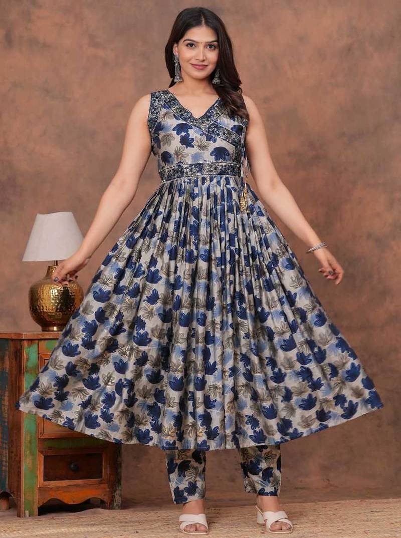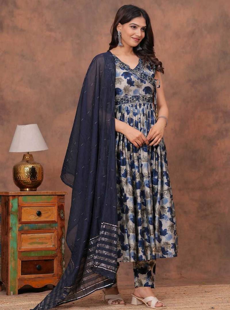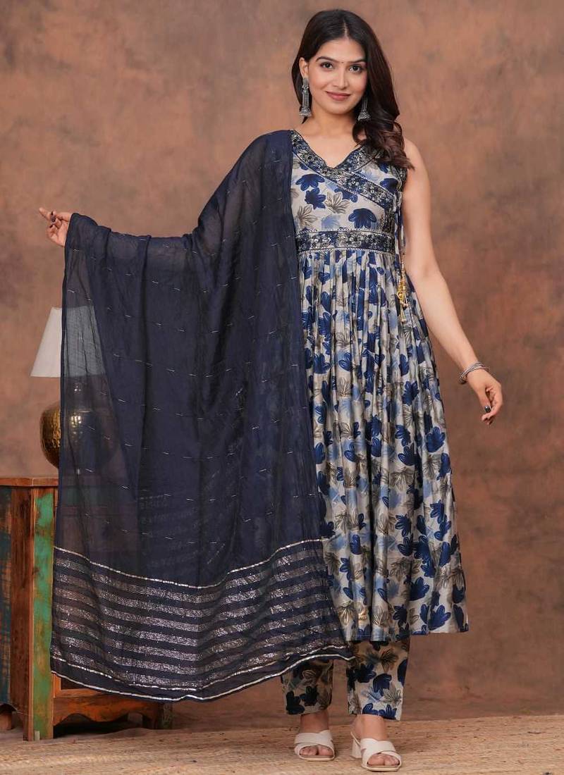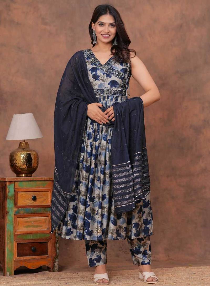 | Product Name | Beautiful Jaipuri Blue Floral Printed Anarkali Suit Set With A Navy Blue Dupatta And Trousers. | |