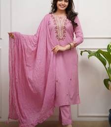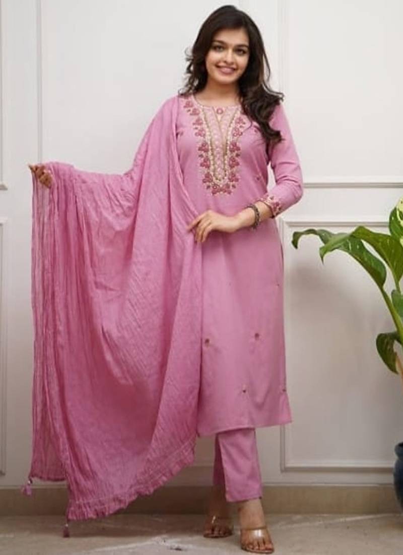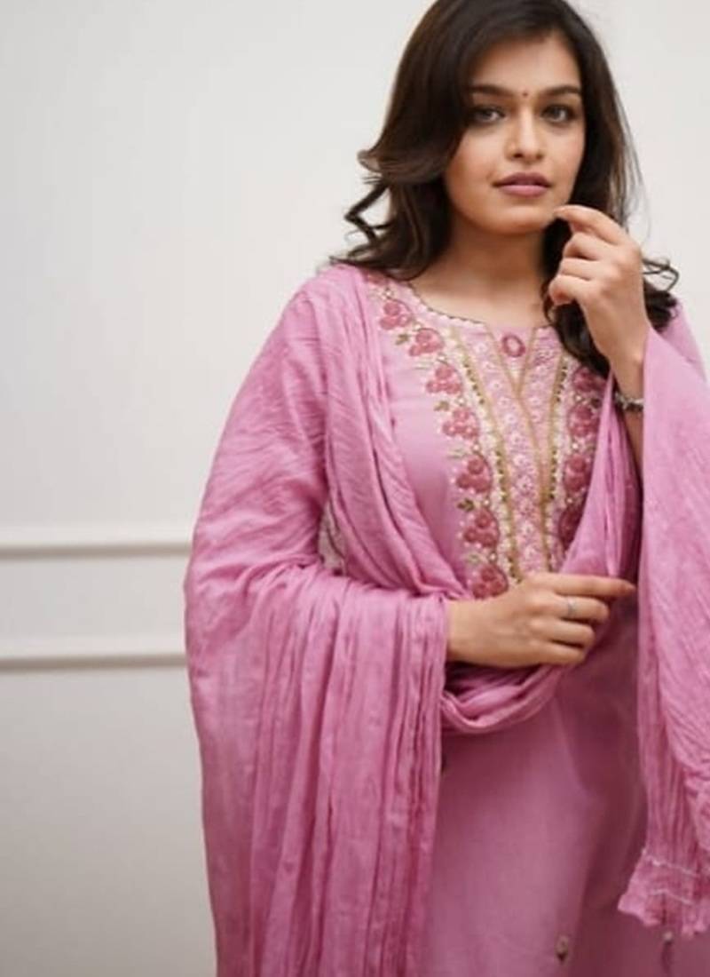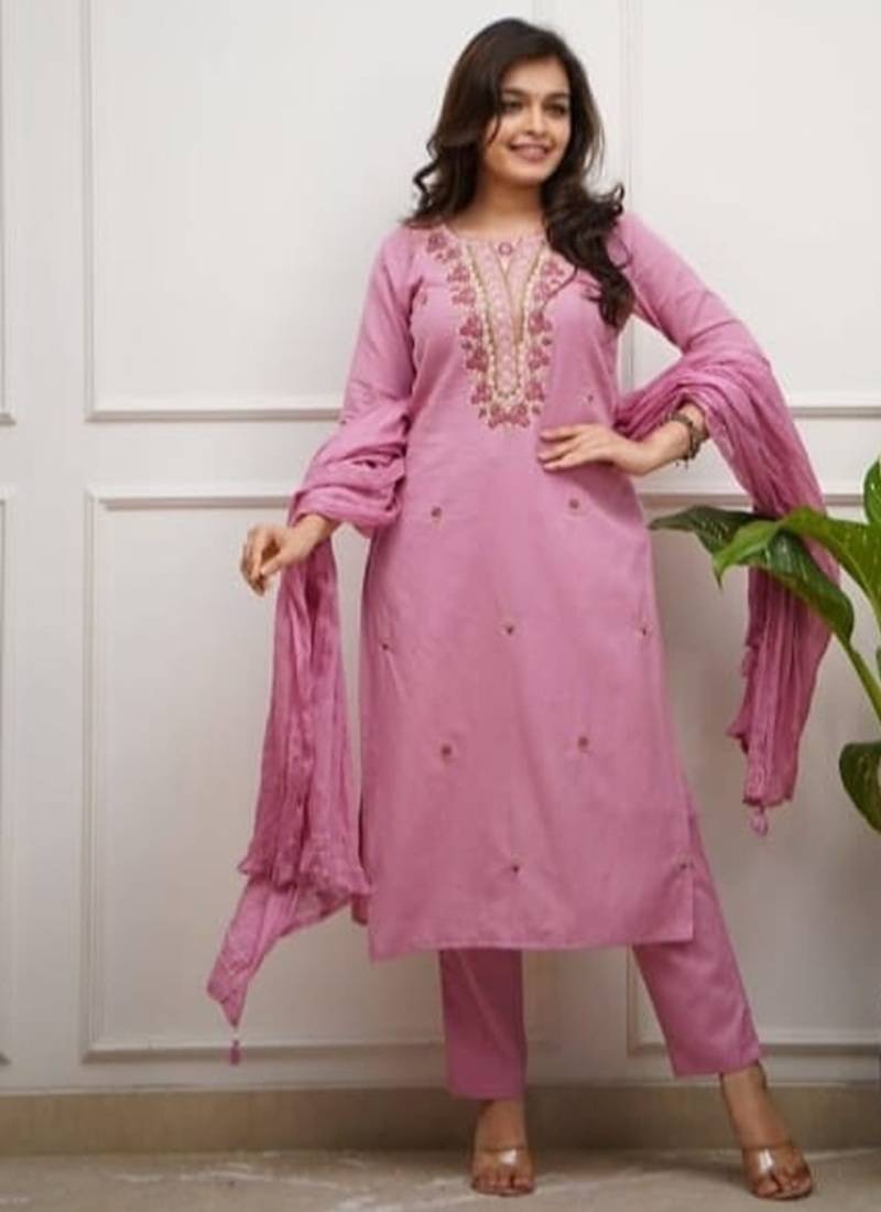 | Product Description | The Outfit Is A Straight Cut Kurta (Tunic) With A Round Neck, Paired With Matching Trousers (Salwar) And A Coordinating Dupatta (Scarf). The Kurti Features Intricate Floral Or Ethnic Motif Embroidery Around The Neckline. The Sleeves Are Three Quarter Length. The Set Is A Rich, Solid Shade Of Soft Pink . The Main Feature Is The Intricate Thread Work Embroidery Around The Neckline/Yoke, Which Includes Floral Or Ethnic Motifs. There Are Subtle Embroidered Motifs Scattered On The Rest Of The Kurta And Possibly The Dupatta's Borders. Material Is Comfortable Fabrics A Cotton Blend, Suitable For Various Occasions. |