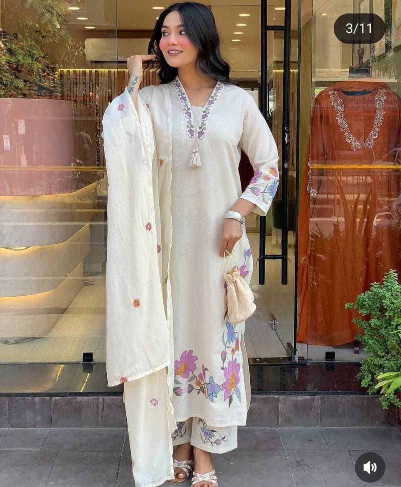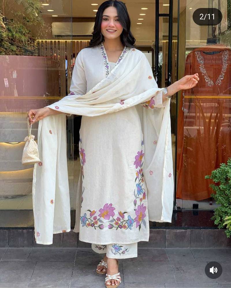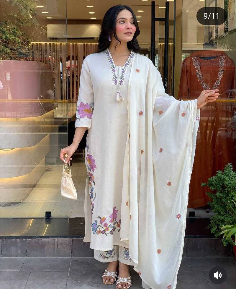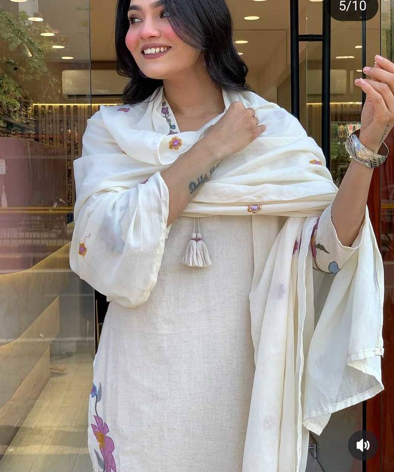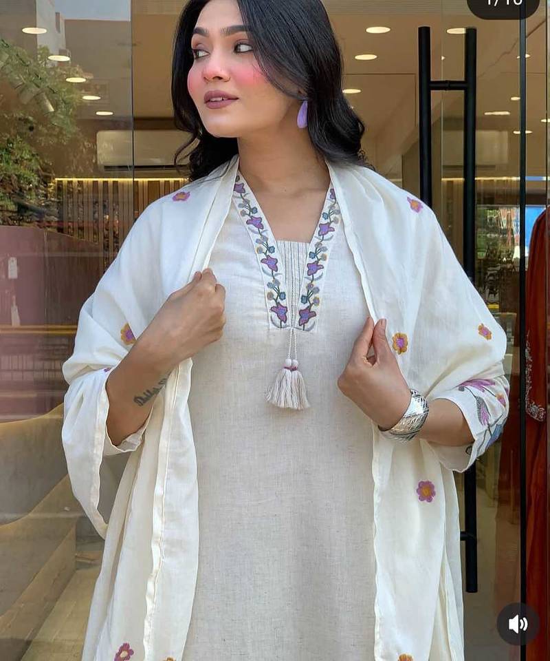 | Product Name | White Linen Floral Embroidered Kurta Set. | |