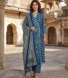 | Product Name | Anouk Blue And Pink Printed Pure Cotton A Line Kurta Set With Dupatta | |