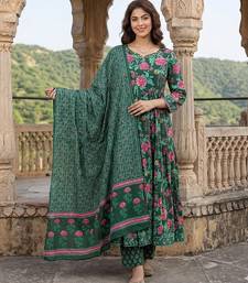 | Product Description | Anouk Green And Pink Pure Cotton Anarkali Three Quarter Sleeves Sweetheart Neck With Calf Length Floral Print Kurta Set With Dupatta |