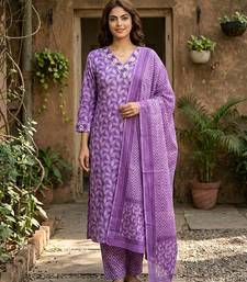 Product Name Anouk Lavender Printed Pure Cotton Straight Kurta Set With Dupatta
