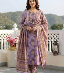 Anouk mauve printed pure cotton straight kurta set with dupatta