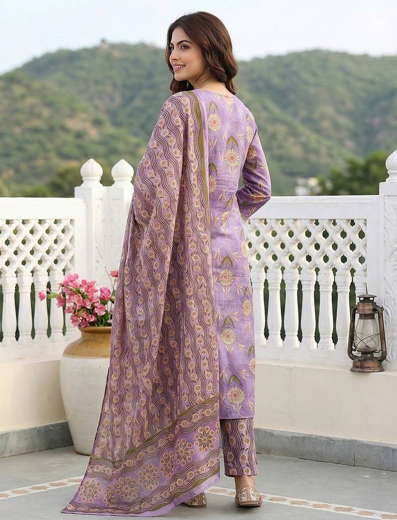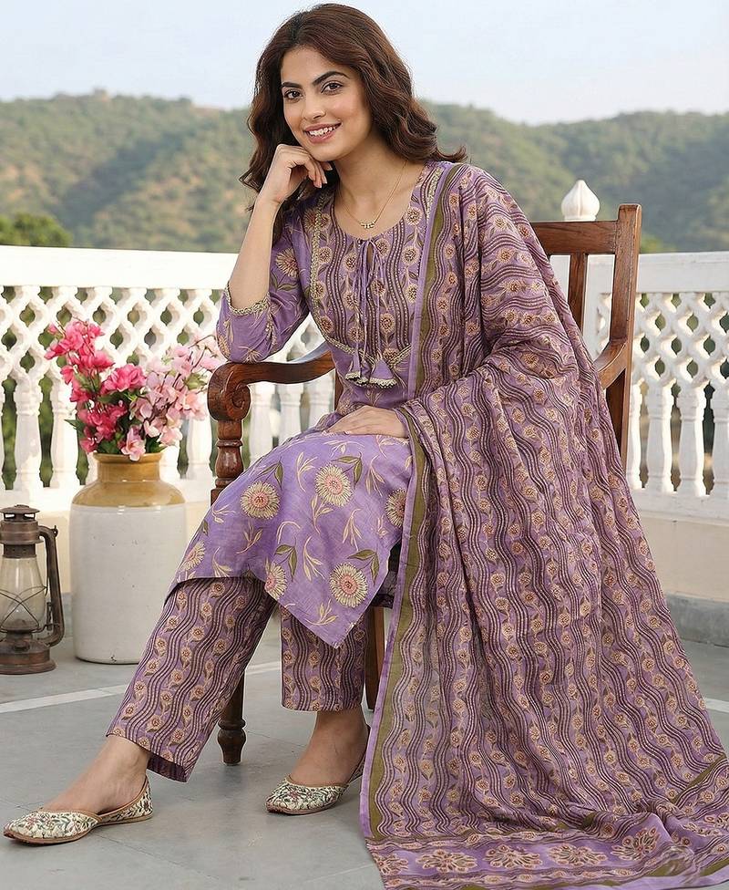 | Product Name | Anouk Mauve Printed Pure Cotton Straight Kurta Set With Dupatta | |