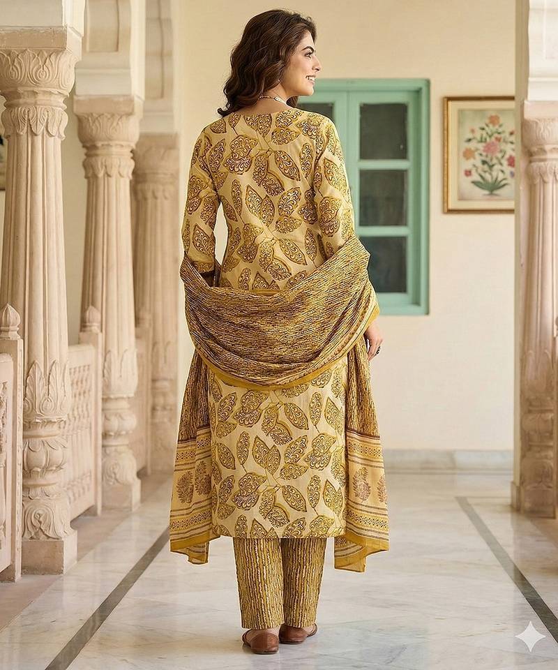 Product Name Anouk Mustard Pure Cotton Straight Regular Kurta Set
