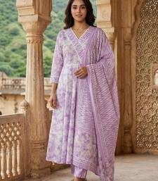 Anouk purple and white pure cotton anarkali angrakha kurta set
