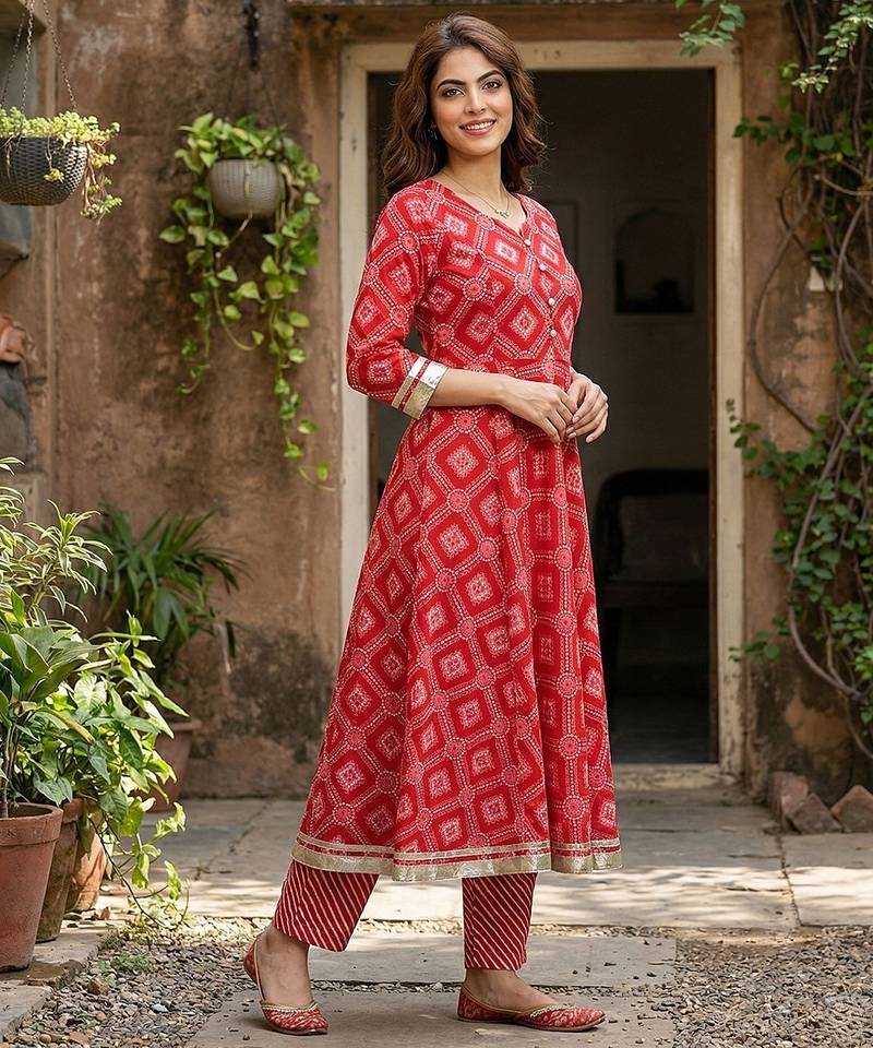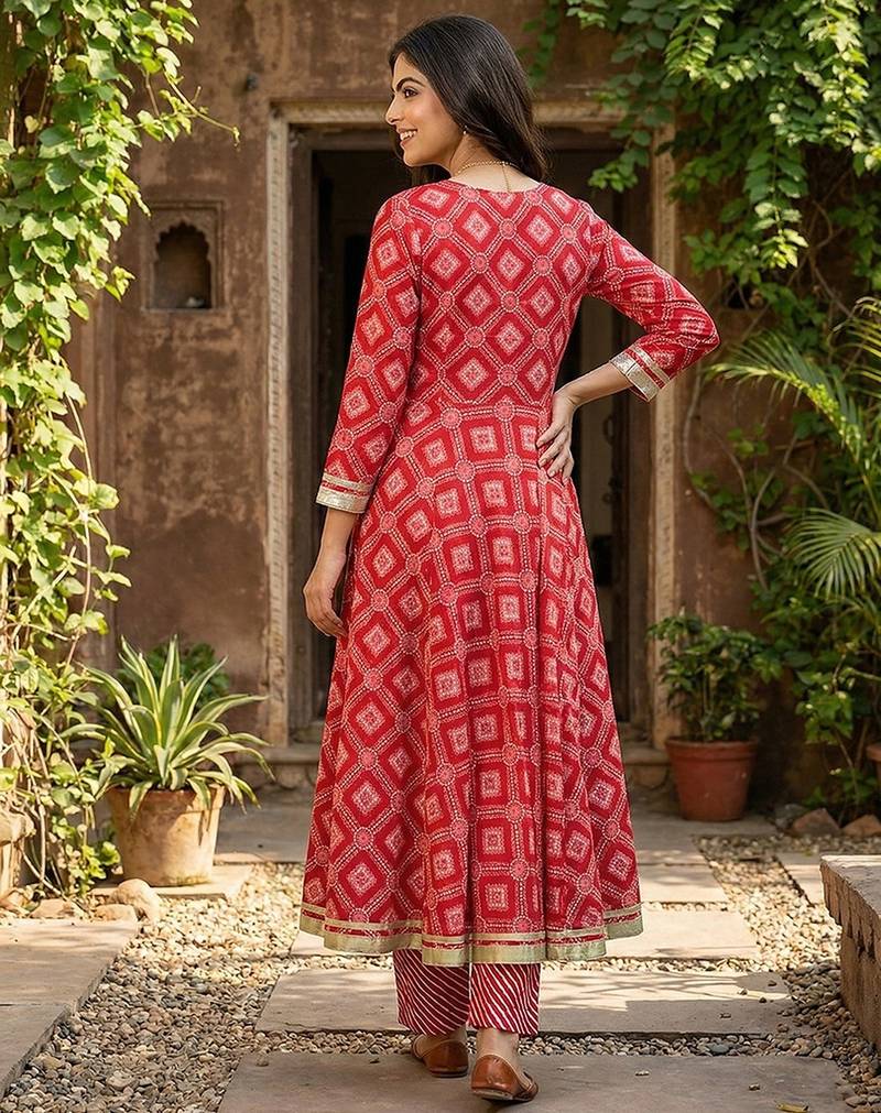 Product Name Anouk Red Pure Cotton Anarkali Regular Kurta Set