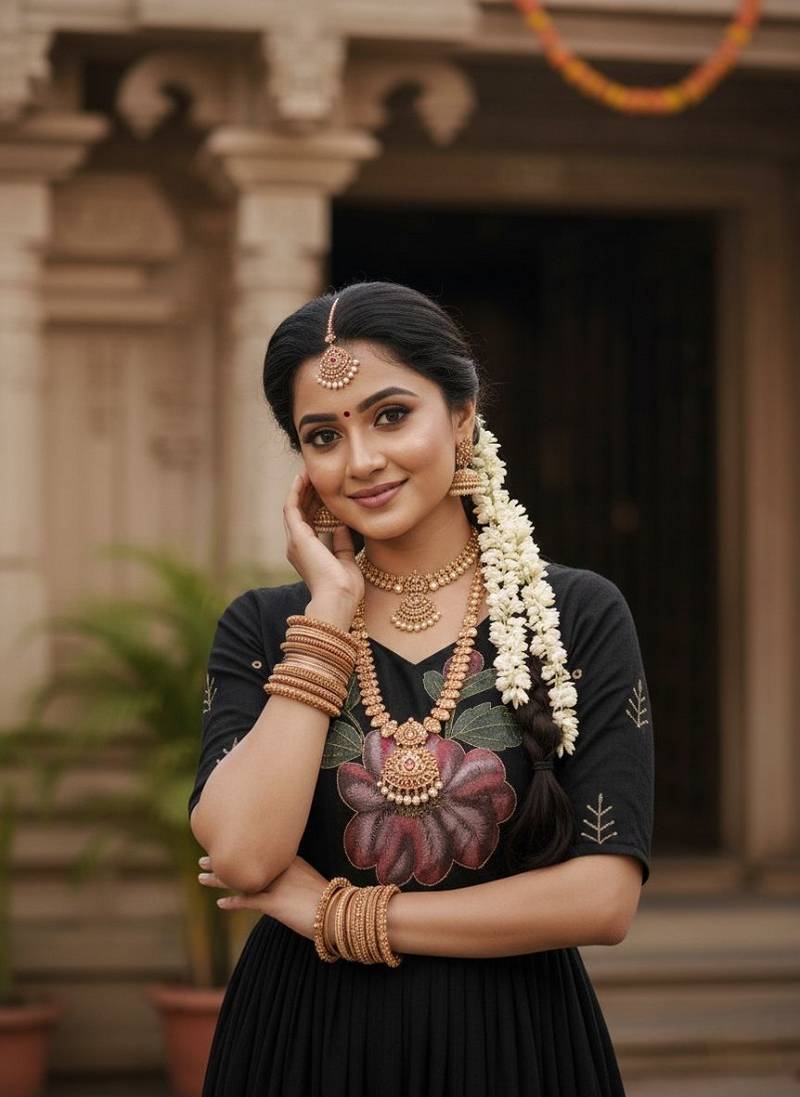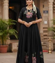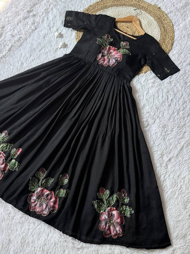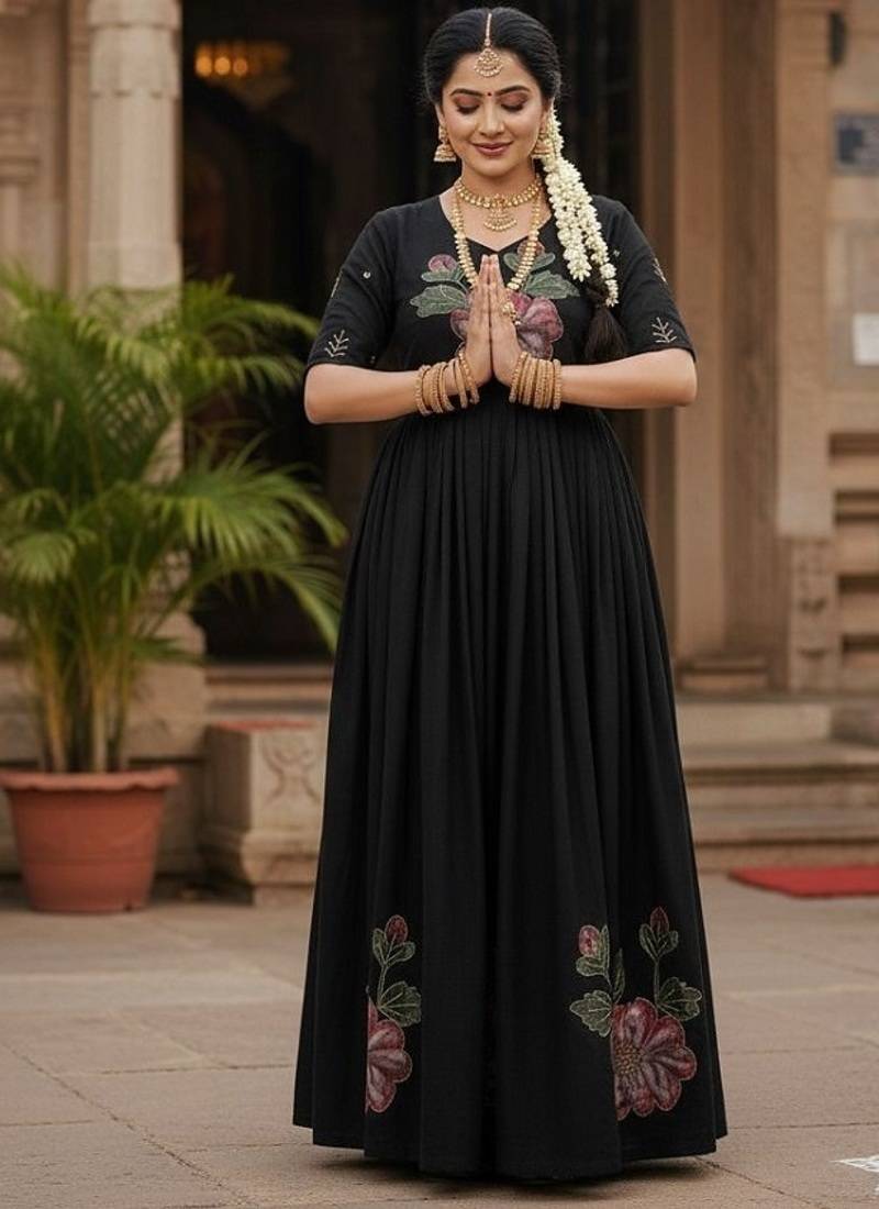 | Product Name | Black Soft Vichitra Original Brush Print With Handwork Gown | |