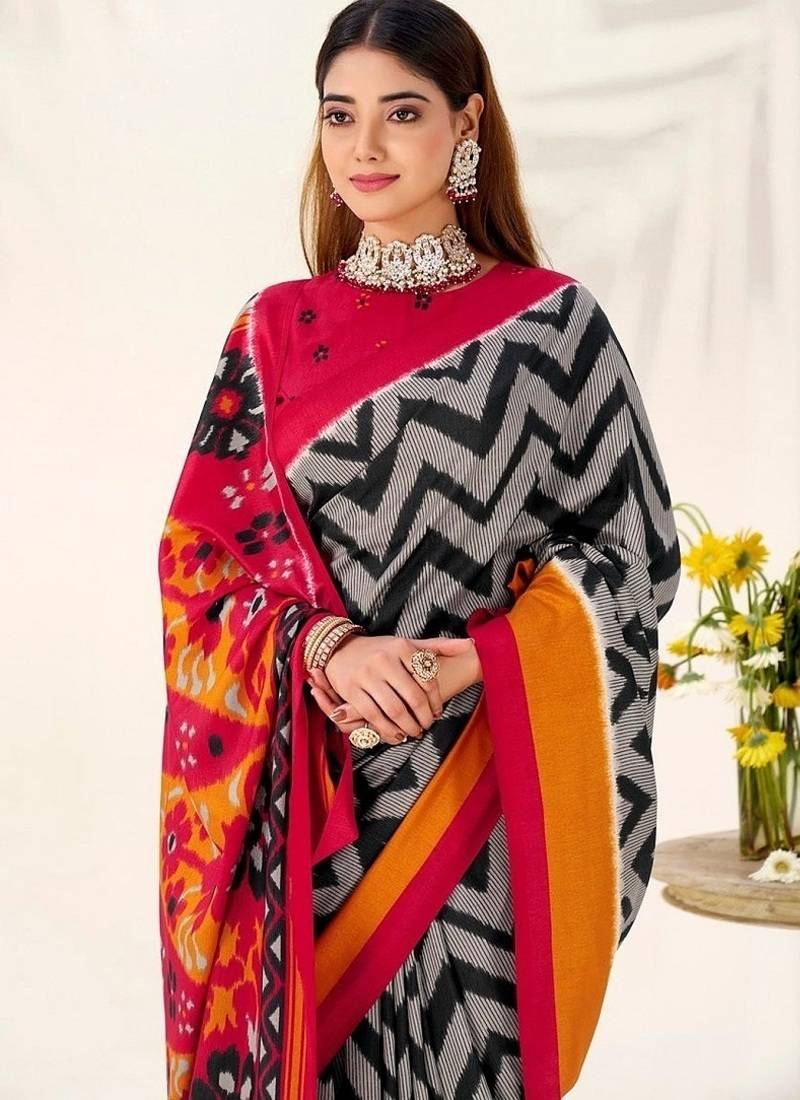 | Product Name | Black Tassar Silk Leheriya Printed Saree With Unstitched Blouse | |