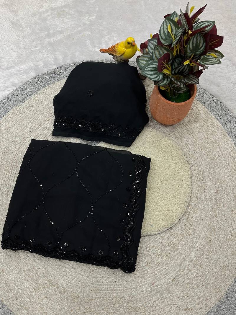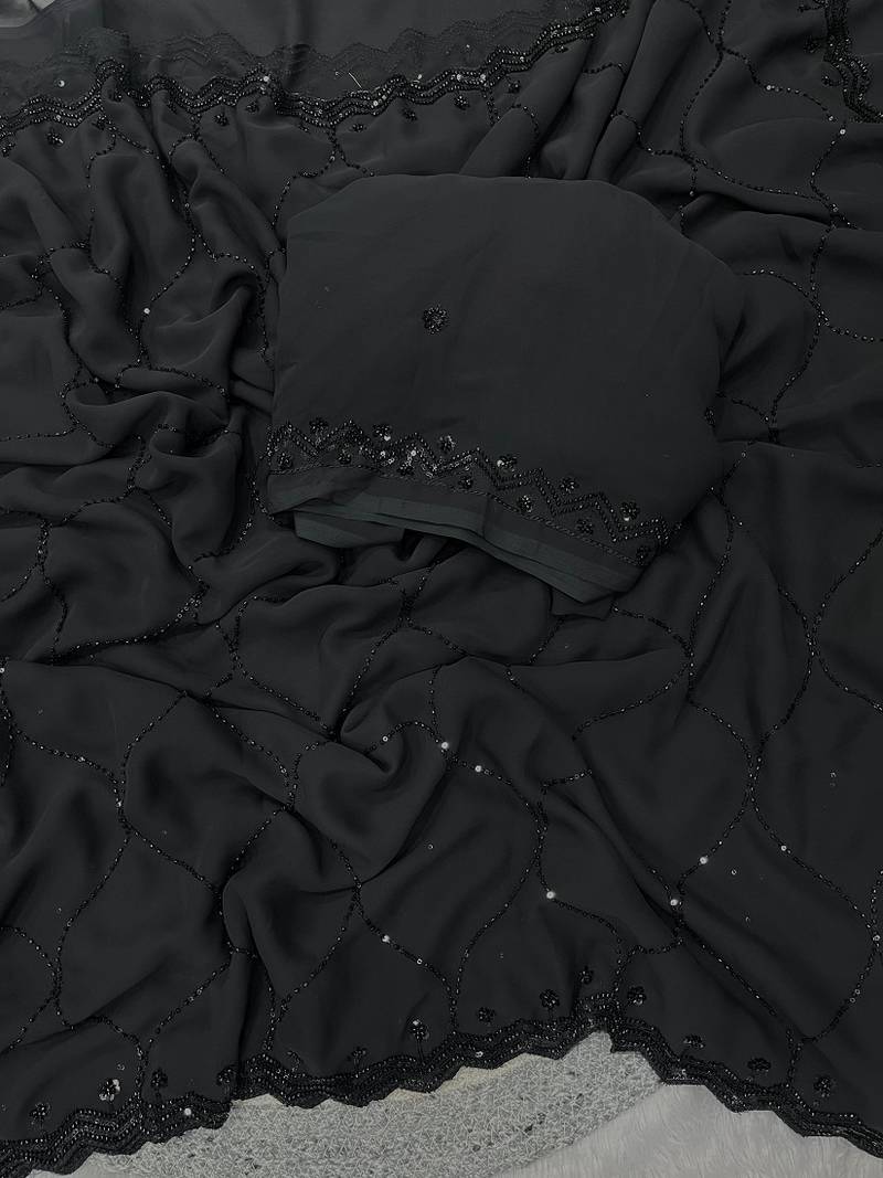 Designer faux georgette beads and sequence work saree with blouse