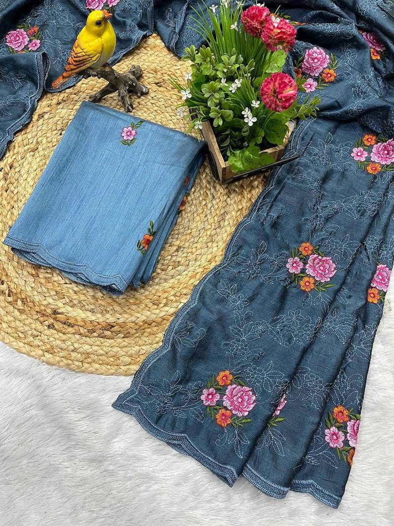 | Product Name | Teal Blue Silk Saree With Multi Thread Cutwork Designs | |
