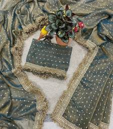 Grey moss silk with jecquard butti saree with unstitched blouse