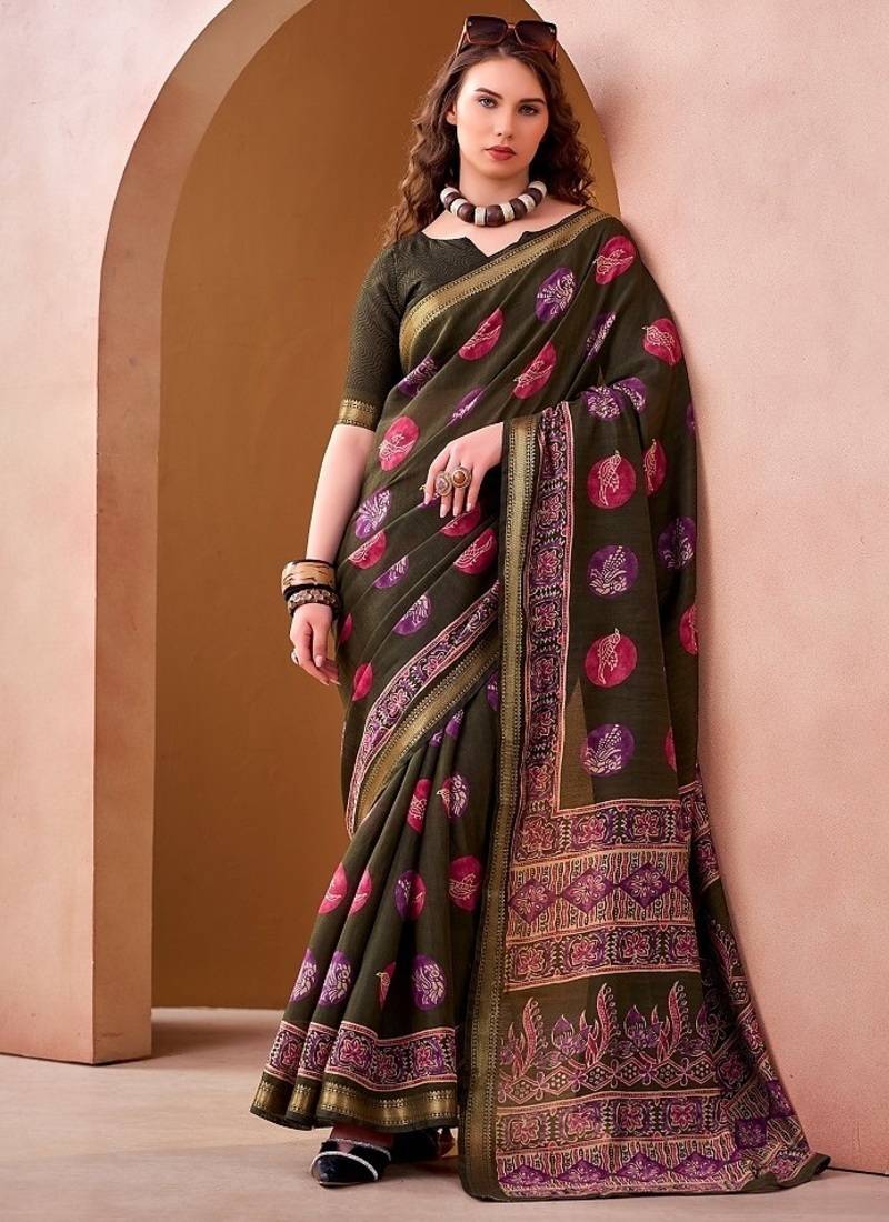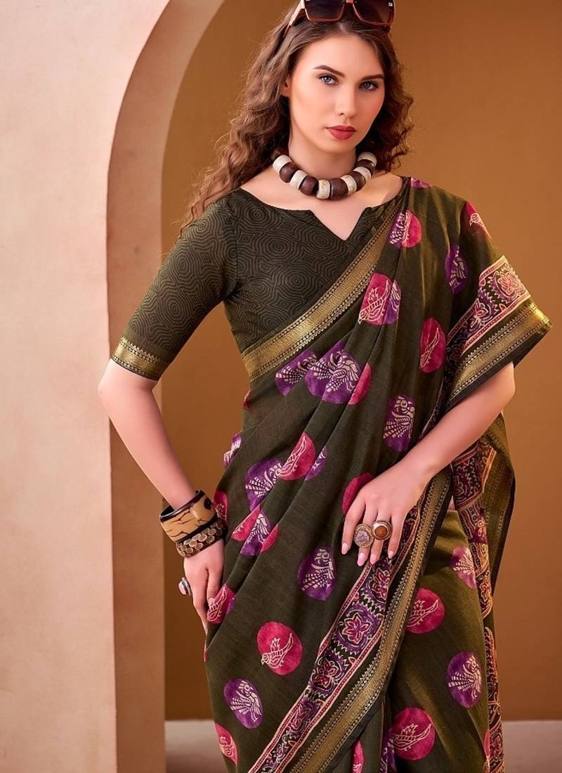 Mehendi p.v chanderi printed casual saree with unstitched blouse