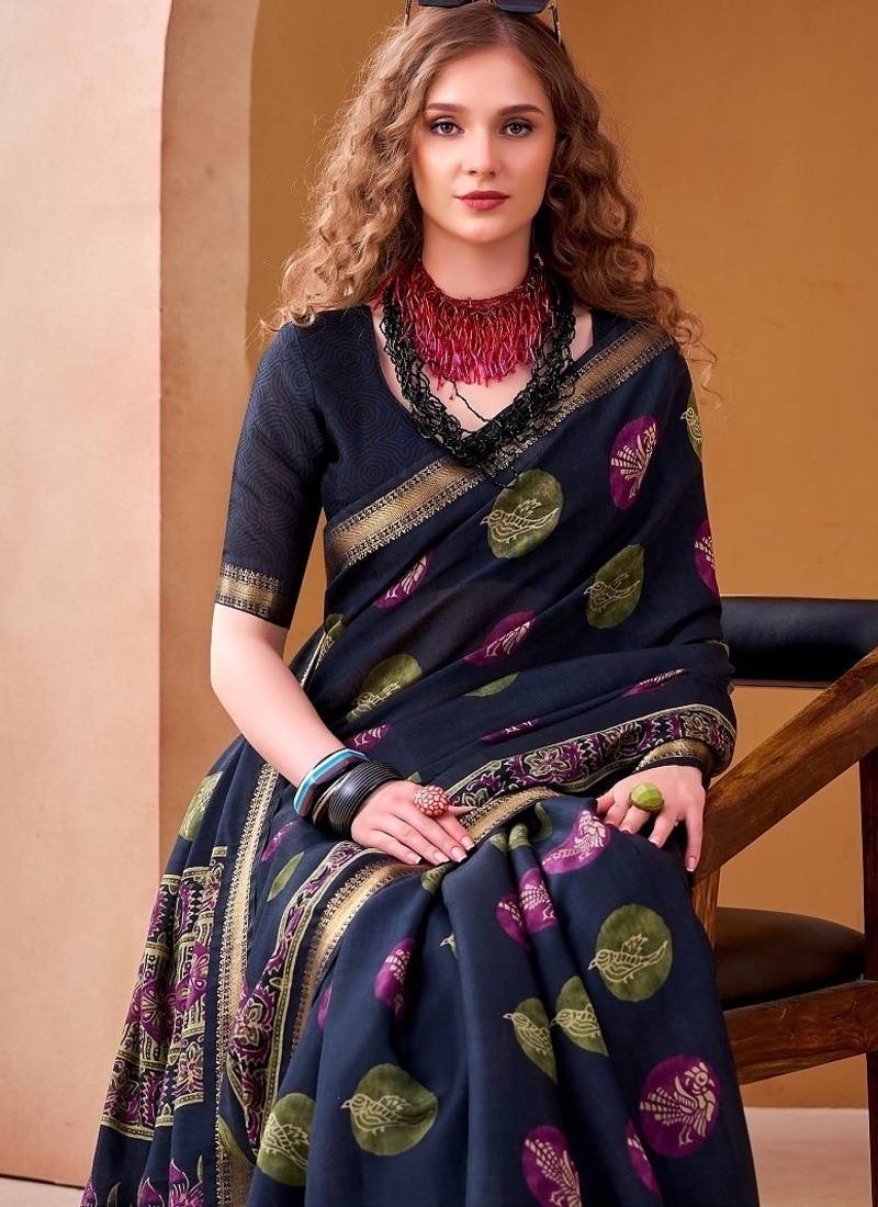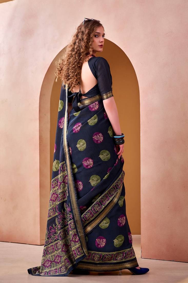 Navyblue p.v chanderi printed casual saree with unstitched blouse