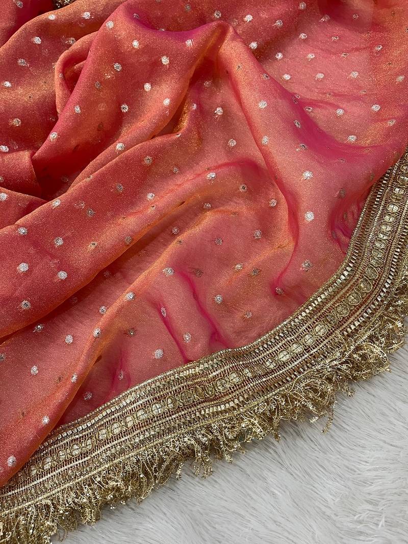 | Product Name | Peach Moss Silk With Jecquard Butti Saree With Unstitched Blouse | |