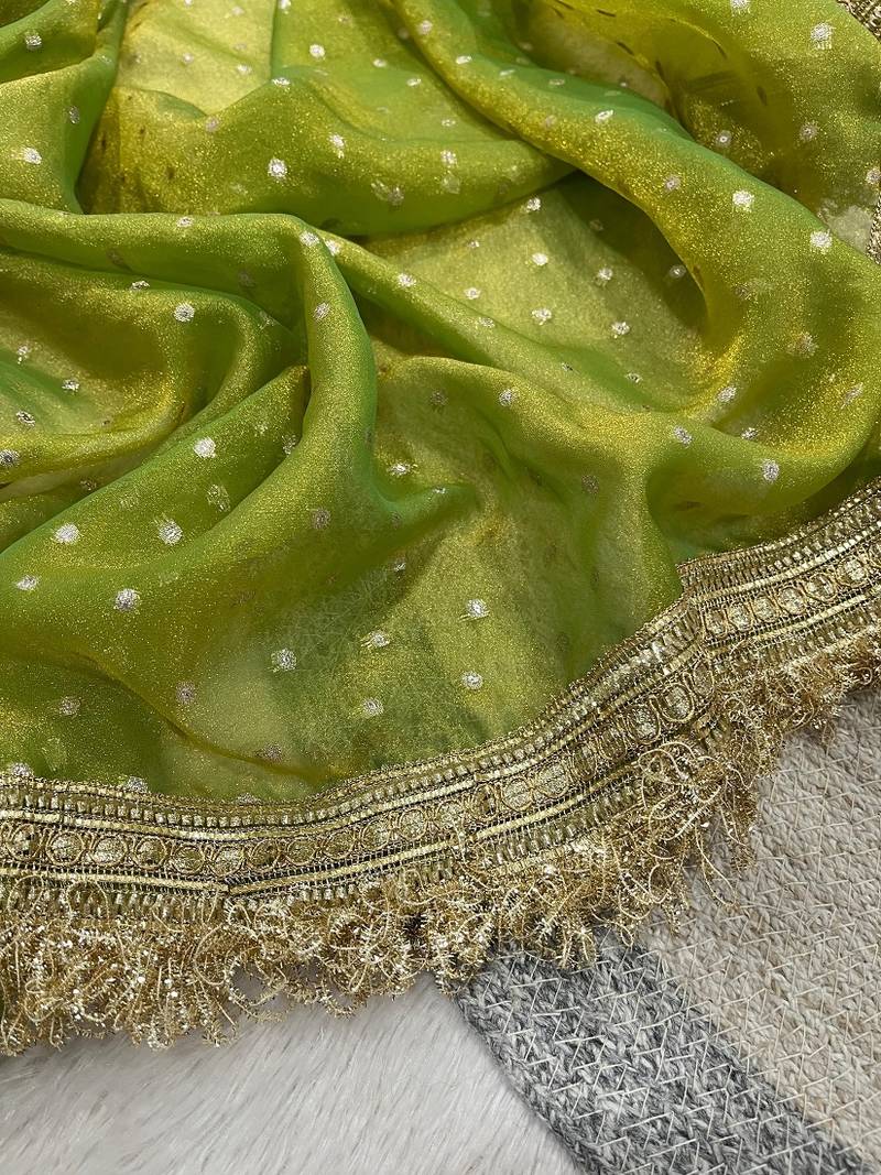 Perrot moss silk with jecquard butti saree with unstitched blouse