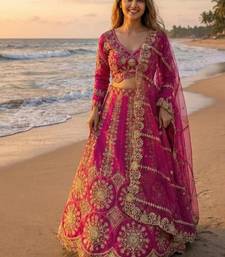 | Product Name | Traditional Rani Pink Embroidered Bridal Wear Lehenga Set | |