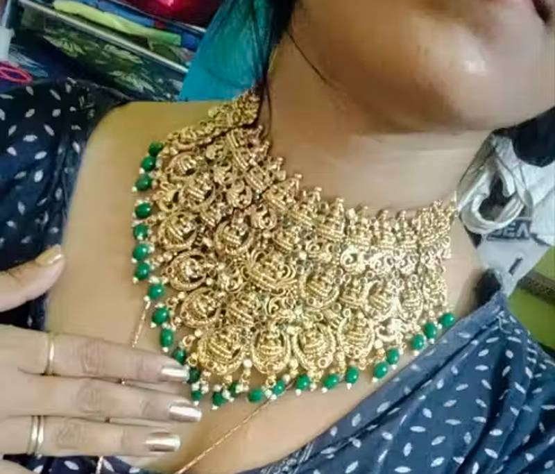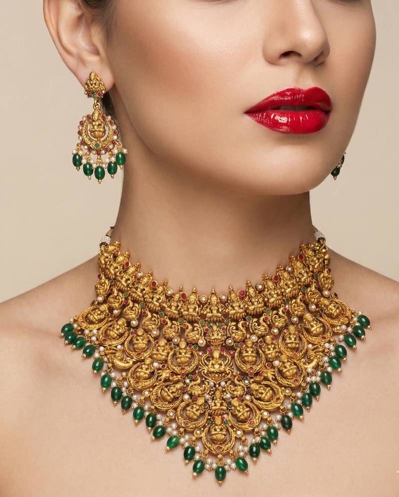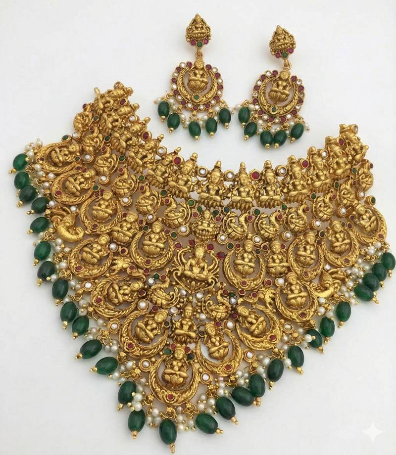 | Product Name | Antique Gold Lakshmi Temple Jewelry Set Traditional Green Bead Bridal Choker Necklace South Indian Ethnic Wedding Wear | |