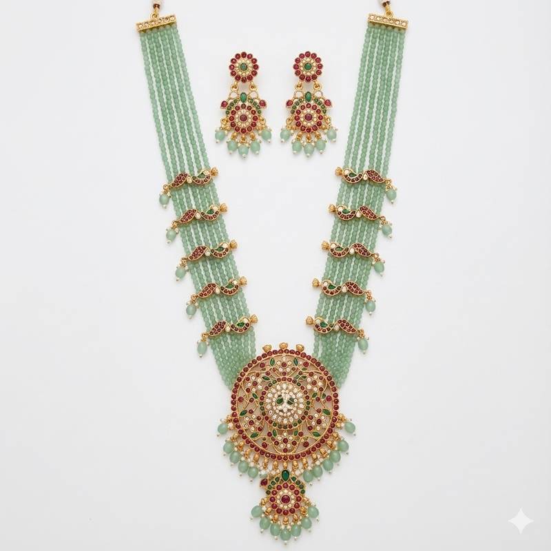 | Product Name | Handcrafted Kundan & Mint Green Bead Long Necklace Set | Traditional Gold Plated Ethnic Jewelry For Weddings & Bridal | |