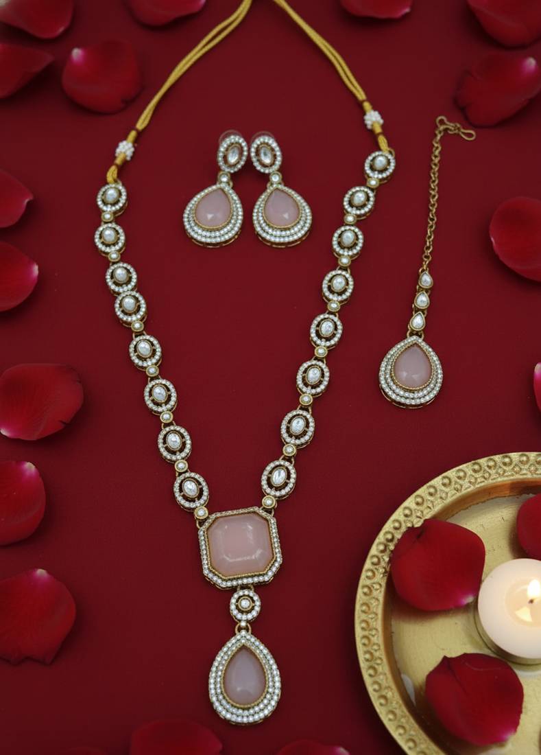• Complete 3 Piece Set: Includes A Stunning Pendant Necklace, A Pair Of Matching Drop Earrings, And An Elegant Maang Tikka (Forehead Jewelry) For A Complete Bridal Or Party Look.