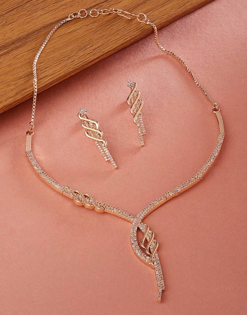 | Product Name | Rose Gold Plated White Cz Studded Jewellery Set | |