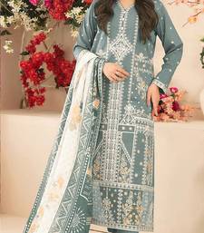 Light green embroidered cotton semi-stitched pakistani salwar suit semi stitched