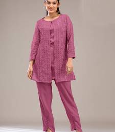 Pink embroidered georgette pakistani salwar suit semi stitched
